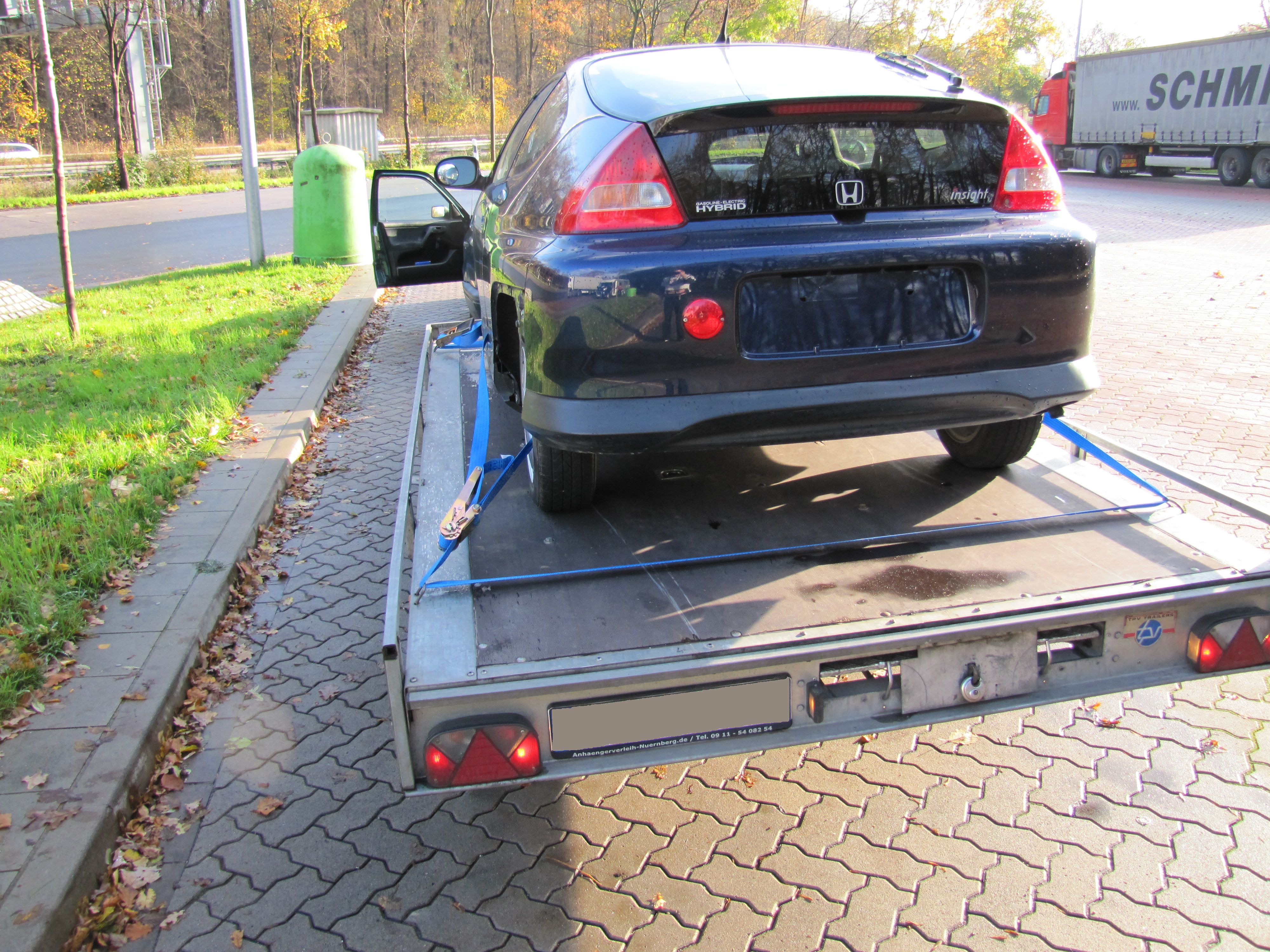 Autotransportanhänger, der zusammen mit dem Honda Insight